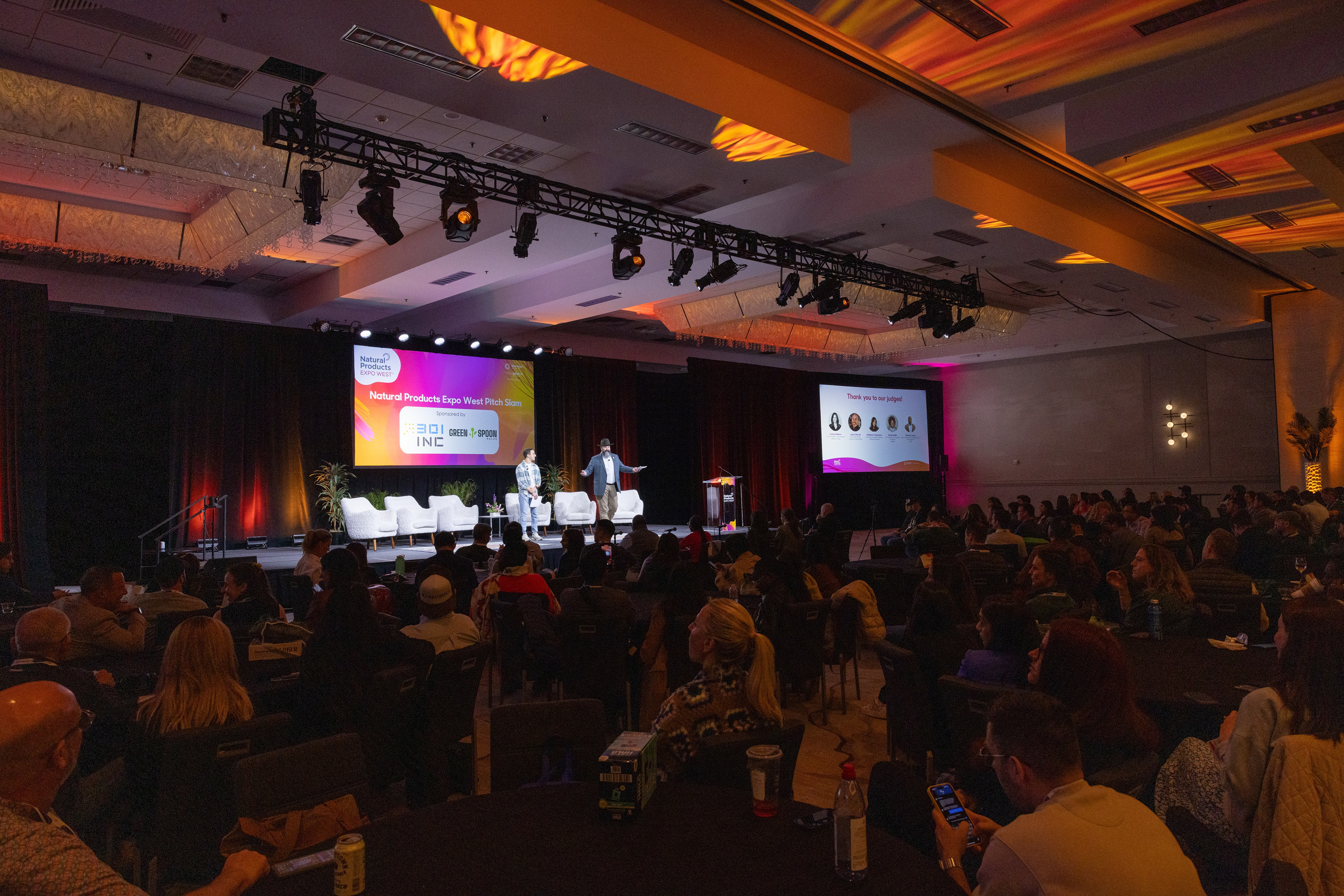 Pitch Slam is one of the most visible live moments at Natural Products Expo West, placing emerging brands on stage in front of investors, industry leaders, and a large in-person audience. The challenge was to move beyond a functional pitch format and create a cohesive stage experience that felt intentional, branded, and immersive. The goal was to shape how Pitch Slam is experienced in the room, from the first visual cue to the final transition.
